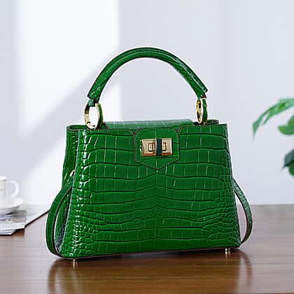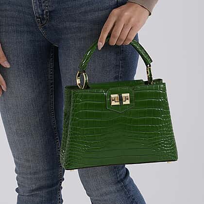 TJC 20TH ANNIVERSARY EXCLUSIVE La Marey Signature Genuine Leather Croc-Embossed Satchel Handbag - Green