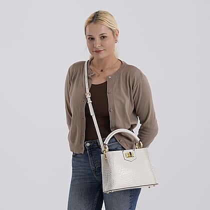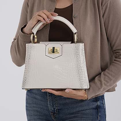 TJC 20TH ANNIVERSARY EXCLUSIVE La Marey Signature Genuine Leather Croc-Embossed Satchel Handbag - Off White