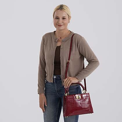 TJC 20TH ANNIVERSARY EXCLUSIVE La Marey Signature Genuine Leather Croc-Embossed Satchel Handbag - Red