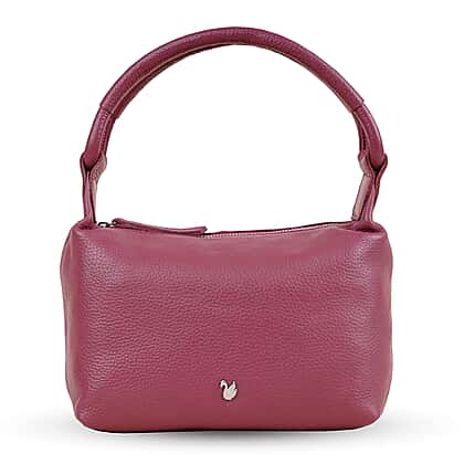 Refine your everyday style with the understated luxury of the Assots ‘City Bag’ in soft pebble genuine leather. Designed with a sleek, curved profile, this shoulder bag blends modern minimalism with timeless appeal. The supple pink leather showcases a rich pebbled texture, complemented by a structured top handle for effortless stunning. Spacious enough for daily essentials, the thoughtfully lined interior keeps everything organised while maintaining a streamlined exterior. Polished hardware accents complete the look, adding subtle sophistication. Versatile and effortlessly chic, this bag transitions seamlessly from workdays to evenings out with confidence and ease.