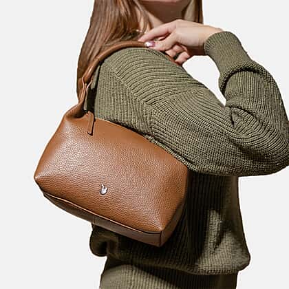 Refine your everyday style with the understated luxury of the Assots ‘City Bag’ in soft pebble genuine leather. Designed with a sleek, curved profile, this shoulder bag blends modern minimalism with timeless appeal. The supple tan leather showcases a rich pebbled texture, complemented by a structured top handle for effortless stunning. Spacious enough for daily essentials, the thoughtfully lined interior keeps everything organised while maintaining a streamlined exterior. Polished hardware accents complete the look, adding subtle sophistication. Versatile and effortlessly chic, this bag transitions seamlessly from workdays to evenings out with confidence and ease.