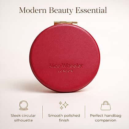 Discover the Alice Wheeler London round compact mirror in red-brownish colour. Compact and stylish, this mirror is perfect for on-the-go touch-ups. The sleek, round design features a luxurious gold trim and a sturdy casing that ensures durability. It fits easily into your bag, making it an ideal companion for travel, everyday use, or special occasions. Available in a beautiful fig colour, it combines practicality with elegance. The mirror's design delivers a clear, crisp reflection, ensuring you always look your best. A perfect gift for someone special or an elegant addition to your personal collection.