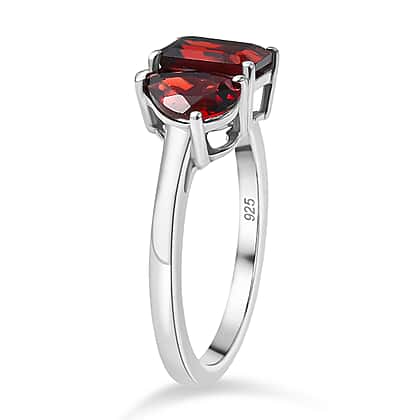 Red Garnet Toi et Moi Ring in Platinum Overlay Sterling Silver 2.36 Ct.