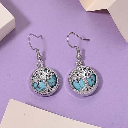 Blue Howlite Tree of Life Earring with Hook in Silver Tone 1.00 Ct.
