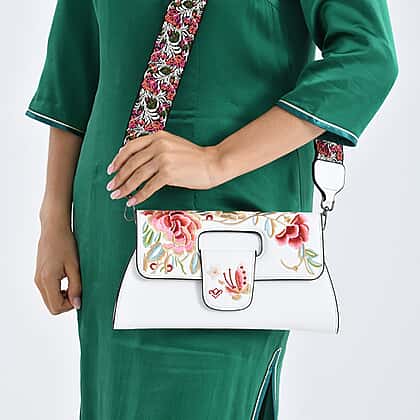 Vintage Chinese Hand Embroidered Crossbody Bag - White