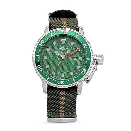 MAJESTY Quartz PC32 3ATM WR Green Hydraulic Dial & Silver Case Mens Watch with Green Nylon Strap