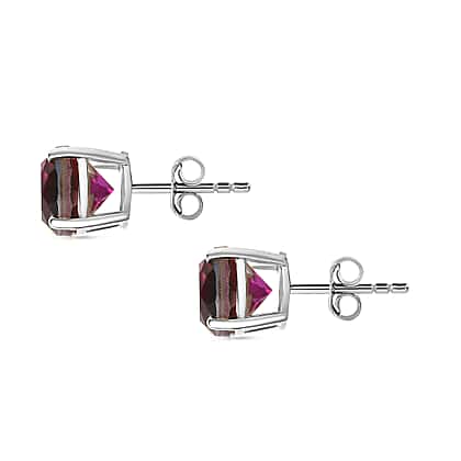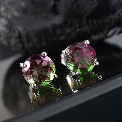 Watermelon Quartz Triplet Solitaire Stud Push Post Earring in Sterling Silver