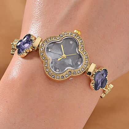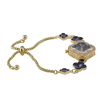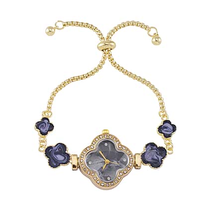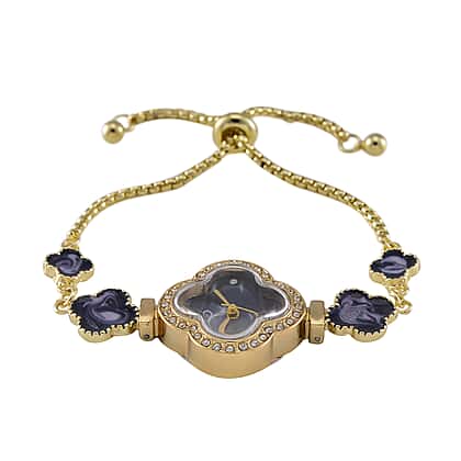STRADA PC21S Japanese Movement Water Resistant Black Fake MOP Dial Watch with Gold Colour Chain Strap