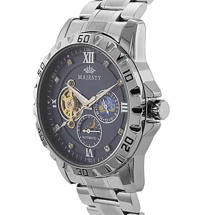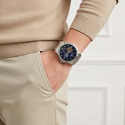 Enhance your wristwear collection with this white crystal watch in pure white stainless steel with a striking blue dial. Designed with detailed sub dials and exposed mechanical elements, it offers a bold and contemporary look. The deep blue dial creates a strong contrast against the polished stainless steel case and bracelet, while subtle crystal accents add refined brilliance. Crafted for durability and everyday reliability, it combines robust construction with modern styling. Suitable for professional settings or smart casual occasions, this timepiece delivers confident presence and dependable performance.