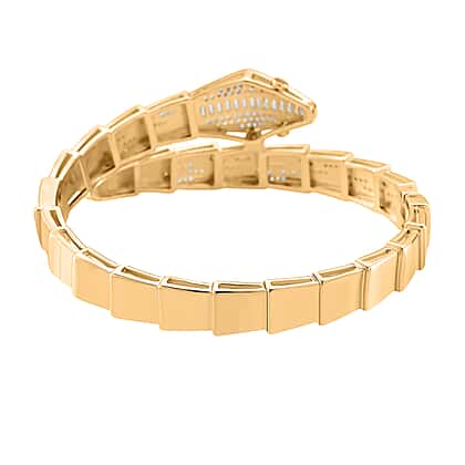 White Cubic Zirconia Cuff Bangle Pure Yellow Brass 2.000 Ct.