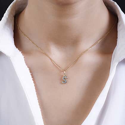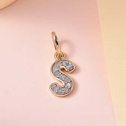 Diamond Initial S Pendant in 18K Vermeil Yellow Gold Plated Sterling Silver 0.15 Ct