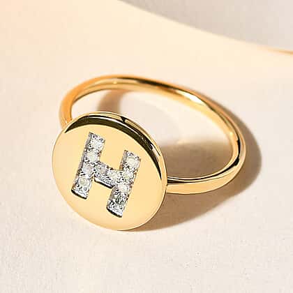 White Diamond Initial-H Ring in 14K Gold Overlay Sterling Silver