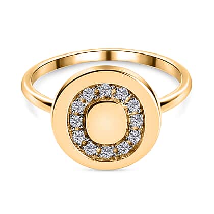 White Diamond Initial-O Ring in 18K Gold Vermeil plate Sterling Silver.