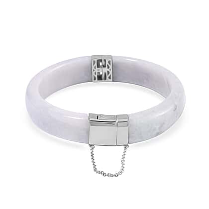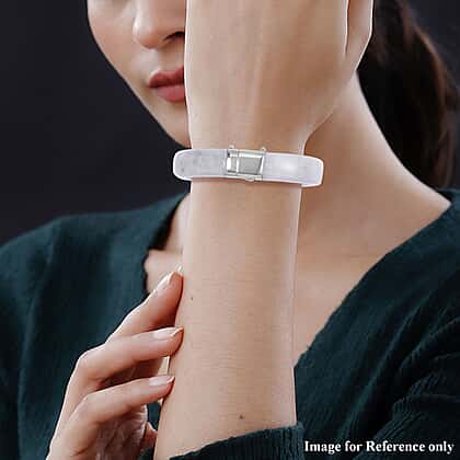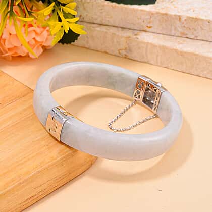 White Jade Bangle in Rhodium Overlay Sterling Silver 270.00 ct, Silver Wt. 8 Gms 270.000 Ct.
