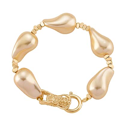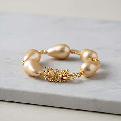 Warm glow and easy glamour shape this golden shell pearl bead bracelet, offering glossy, even colour across the strand. This 7.5-inch bracelet features golden shell pearls, loved for their consistent hue, smooth surface and luminous sheen, giving a polished look that pairs beautifully with neutrals. A sculpted dragon spring clasp brings symbolism of protection, luck and strength while fastening securely. The beads are strung through a durable thread for a comfortable fit. Hardware is skin‑friendly and built for dependable wear. Choose this bracelet when you want refined warmth, meaningful detailing and a strand that transitions from weekday to weekend.