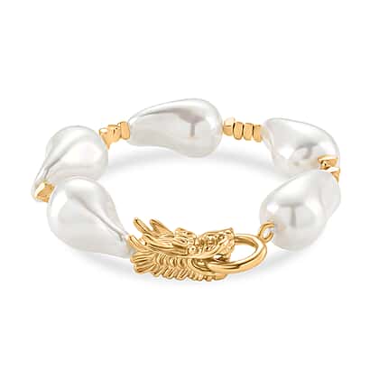 Clean brightness meets thoughtful symbolism in this white shell pearl bead, designed for soft glow and everyday ease. This 7.5-inch bracelet features white shell pearls, valued for uniform tone, smooth nacre‑like finish and gentle lustre, lending a polished feel to simple looks. The dragon motif spring clasp adds a striking focal point and symbolism of strength and good fortune, clicking shut securely. Evenly spaced beads create a neat roll on the wrist while the skin‑friendly hardware helps keep wear comfortable. Add this bracelet whenever you want light, versatile shine with a meaningful clasp that subtly elevates your styling.