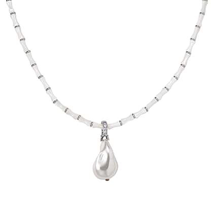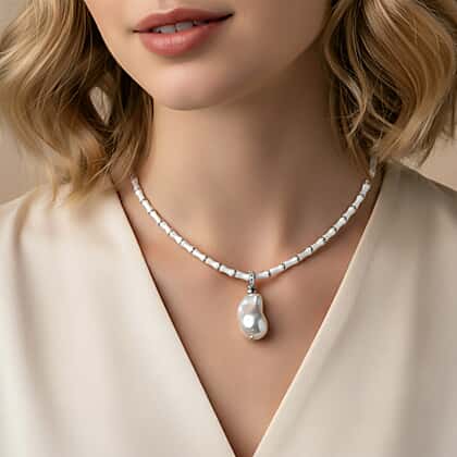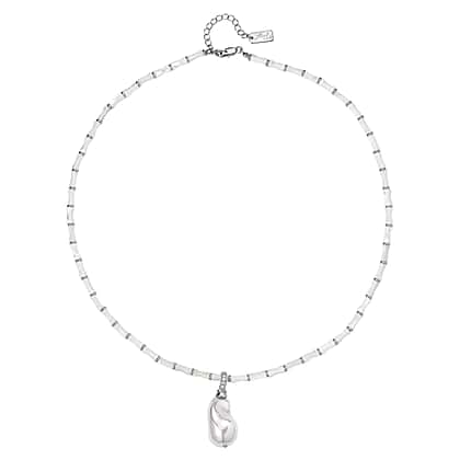 White Shell Pearl & White Cubic Zirconia Necklace (Size 20 - 2 Ext)