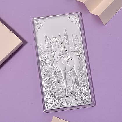 Embrace the allure of fine detailing with this Unicorn collectible in 99.9% pure silver. The raised motif presents a poised unicorn within an intricately worked landscape, brought forward through precise engraving and layered textures. Its sleek rectangular design is complemented by a polished finish that enhances clarity and definition across the surface. Designed with thoughtful craftsmanship, this piece offers a refined visual presence, making it a distinctive addition to a collection or a meaningful gifting choice.