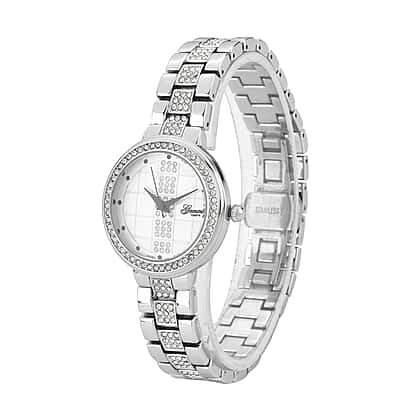 GENOA TIME V2 Miyota 2035 Japan Movement 3ATM Water Resistant White Crystal & Silver Dial Watch with Silver Colour Chain Strap