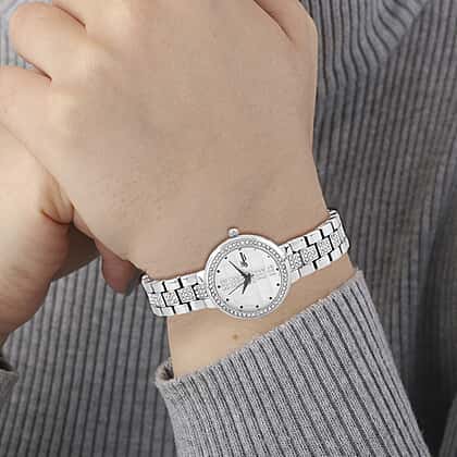 Genoa Time V2 Women's White Crystal Dial Japanese Movement Watch with IPS Plated Strap