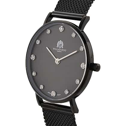 WILLIAM HUNT Limited Edition 5ATM Water Resistant Moissanite Watch - 36mm Dial With Milanese Strap - Black