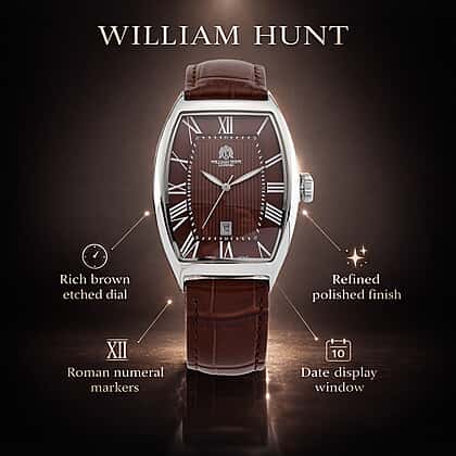Own every moment with the William Hunt Pure White Stainless Steel Mix Metal Watch in brown. Featuring a rich brown dial paired with a polished stainless steel case, this timepiece delivers depth and character with refined detail. Roman numeral hour markers enhance its classic styling, while the genuine brown leather strap adds warmth and comfort to the wrist. Powered by reliable movement and crafted for everyday durability, it balances style with performance. Whether paired with tailoring or smart-casual outfits, this watch adds distinction and a well-defined finish to your overall look.