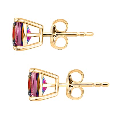 Nebula Quartz Doublet Cushion Push Back Earrings in 18K Vermeil Yellow Gold Plated Sterling Silver 3.16 Ct.