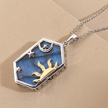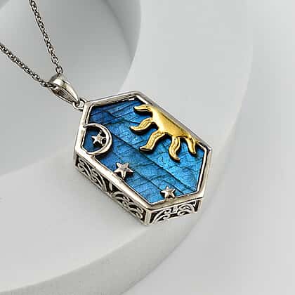 2 Piece Set - Labradorite Rope Chain and Fancy Pendant in Two Tone Plated Sterling Silver 18.86 Ct.