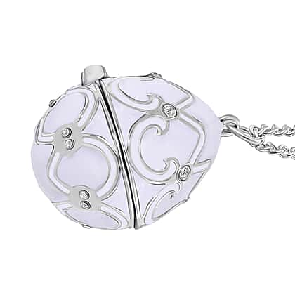 Designer Inspired - Enamled Openable Egg Pendant - White