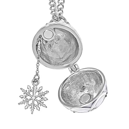 Designer Inspired Enamled Snow Flake Egg Crystal Necklace - White
