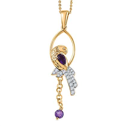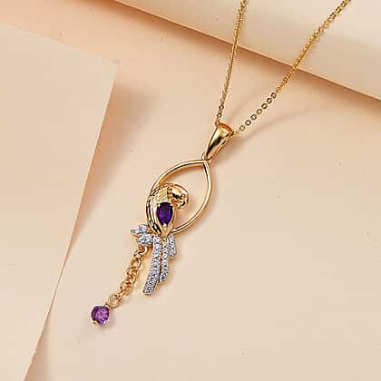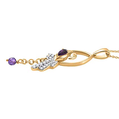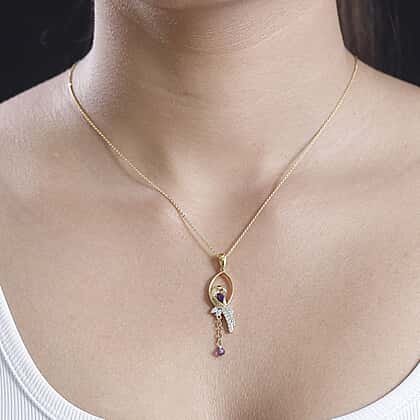 GP Italian Garden Collection - African Amethyst, White Zircon, Blue Sapphire Pendant with Silver Chain (Size 20) in 18K Vermeil Yellow Gold Plated Sterling Silver