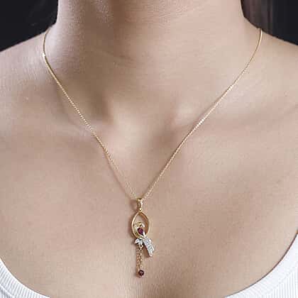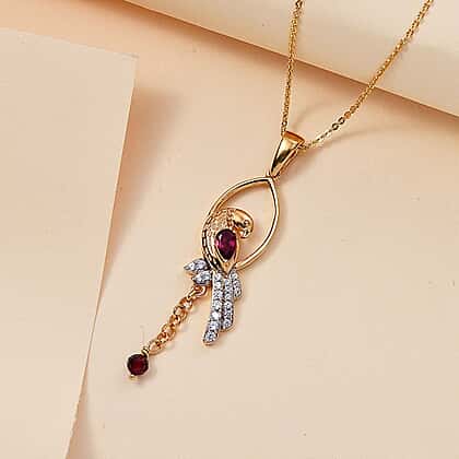 Rhodolite Garnet, White Zircon, Blue Sapphire Pendant with Chain (Size 20) in 18K YG Vermeil Sterling Silver