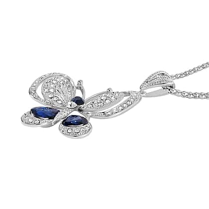Blue Crystal , White Crystal Necklace (Size - 28) 0.02 ct 0.020 Ct.