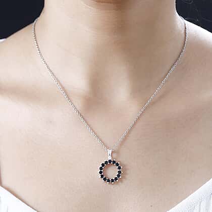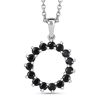 Boi Ploi Black Spinel Sterling Silver Circle Pendant with Stainless Steel Chain (Size 20), 1.65 Ct.