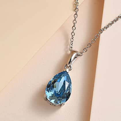 Light Blue Austrian Crystal Platinum Overlay Sterling Silver Solitaire Pendant with Stainless Steel Chain 4.85 Ct.
