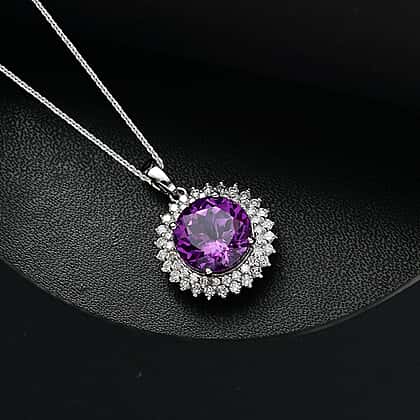 10K White Gold, Lab Grown Color Change Sapphire, Lab Grown Diamond Pendant with Chain (Size 18) 6.00ct Gold Wt. 5.14 Gms 4.480 Ct.