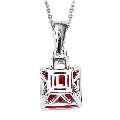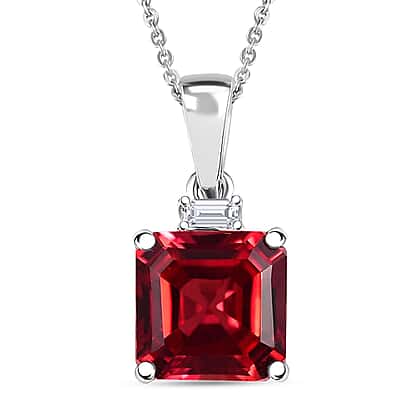Certified and Appraised LUXURIANT AAA Asscher Cut Lab Grown Padparadscha Sapphire, Lab Grown Diamond Pendant Necklace in 10K White Gold (18 Inches) 3.52 Ct. (E-F, VS)