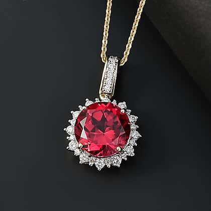 10K Yellow Gold, Lab Grown Padparadscha Sapphire, Lab Grown Diamond Pendant with Chain (Size 18) 5.72ct Gold Wt. 4.73 Gms 4.270 Ct.