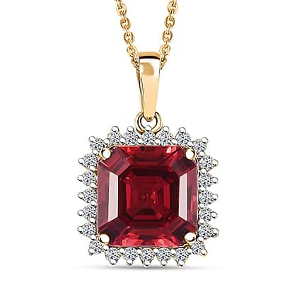 10K Yellow Gold, Lab Grown Padparadscha Sapphire, Lab Grown Diamond Pendant with Chain (Size 18) 6.51ct Gold Wt. 2.71 Gms 5.860 Ct.