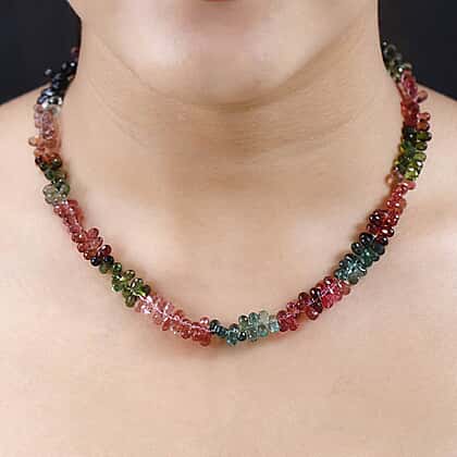 A luxurious fusion of various colours, this certified and appraised AAAA-grade multi-tourmaline necklace radiates beautiful hues, making it a fascinating addition to your collection. Each gemstone is hand-selected and woven in a beaded pattern, capturing nature's art in a necklace. The eye-catching multi-coloured gemstones are believed to have a symbolic association with positive energy and protection. Crafted with hypoallergenic 18K yellow gold for durability and comfort for sensitive skin.