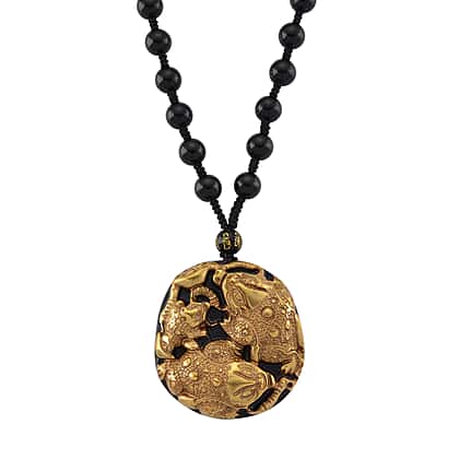 18K Yellow Gold Black Obsidian Triple Pixiu Necklace (Size - 26) 380.00 Ct.