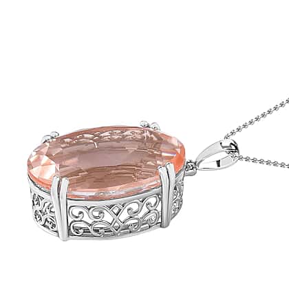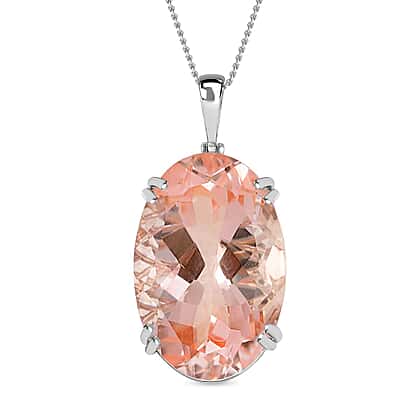 50 Carat Morganite Color Quartz Solitaire Pendant with Chain (Size 20) in Platinum Overlay Sterling Silver