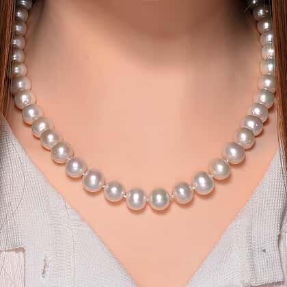 950 Platinum AAAA High Lustre Spherical Edison (10mm-11mm) Pearl Necklace (Size - 20).