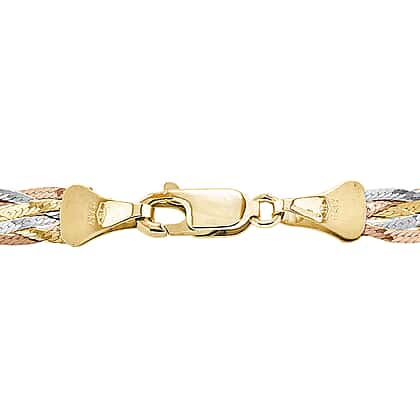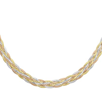 9K 3 Colour Gold 6 Plait Textured Herringbone Necklace 18 Inch