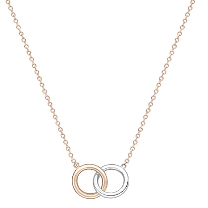 9K Two Colour Gold 11.5mm Interlocked Rings Necklace 17 Inch to 18 Inch