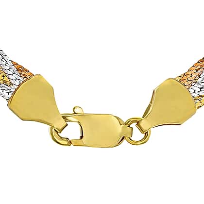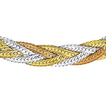 9K Tri Colour Gold Plait Textured Herringbone Necklace 18 Inch, 6.3 grams