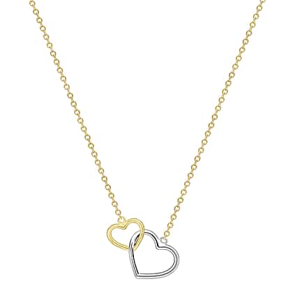 9K Two Colour Gold 13MM X 12MM And 9MM X 9MM Interlocked Hearts Necklace 18 Inch, 2.1 grams
