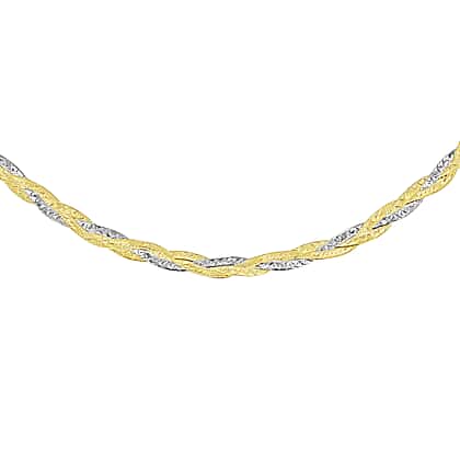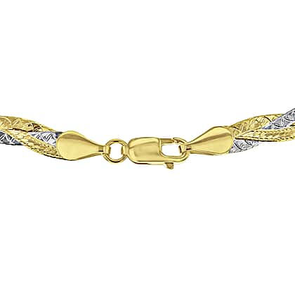 9K Two Colour Gold 3.5mm Diamond Cut 3 Plait Herringbone Necklace 18 Inch