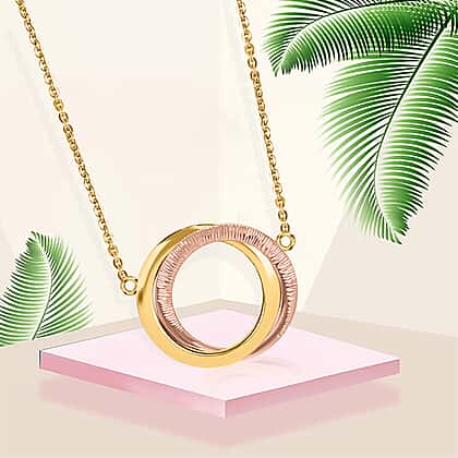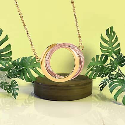 9K Two Colour Gold Diamond Cut 25mm X 20mm Double Ring Pendant Necklet 45.5Cm-17.9"