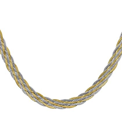 9K Two Colour Gold Plait Textured Herringbone Necklace 18 Inch, 6.1 grams